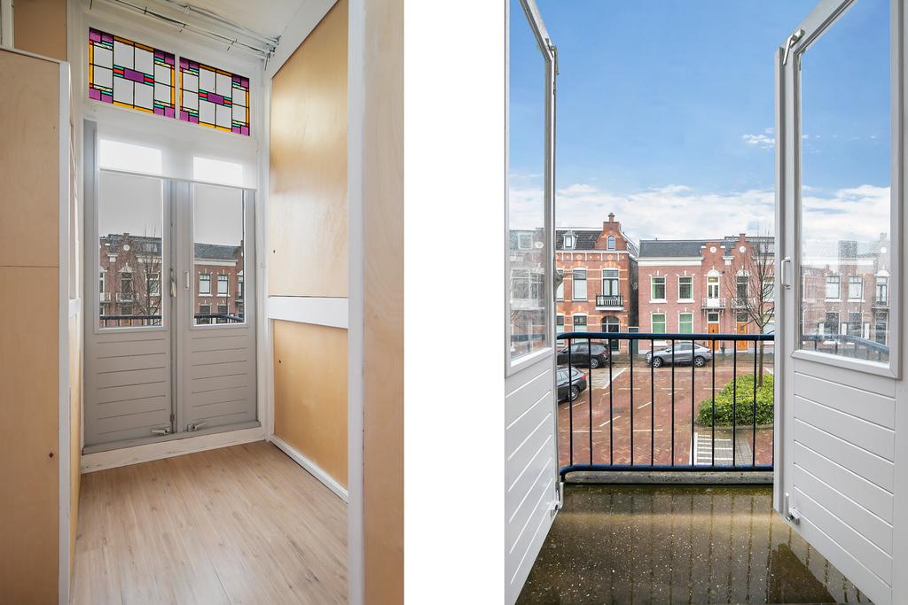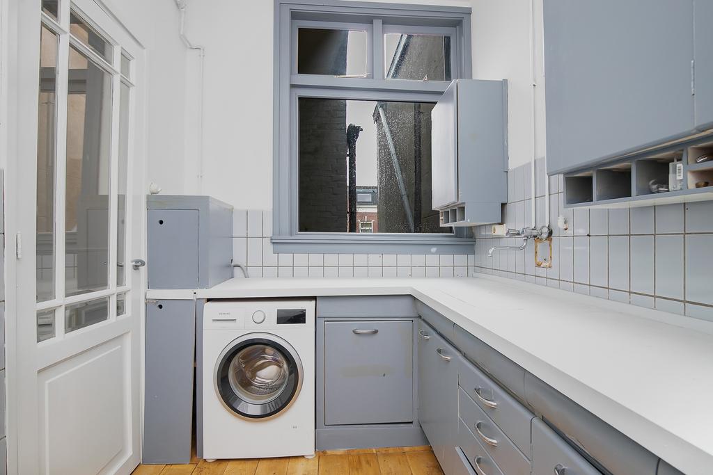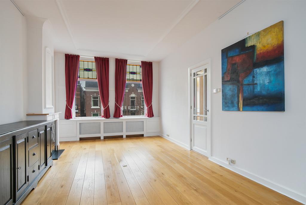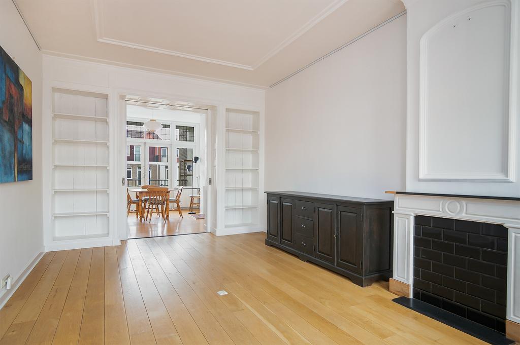 Overloop met toegang tot de kamer met openslaande deuren naar het balkon aan de voorzijde. De ruime woonkamer is gelegen aan de voorzijde met grote raampartijen waardoor u veel lichtinval heeft. Vanuit de woonkamer loopt u via de en suite deuren naar de achterkamer, voorzien van 2 vaste kasten en openslaande deuren naar het ruime balkon. De royale keuken met houten en rvs frontinrichting, antracietgrijs aanrechtblad en diverse inbouwapparatuur; koel-vriescombinatie, inductiekookplaat, vaatwasser, combimagnetron , close-in-boiler en oven. Vanuit de keuken heeft u toegang tot dakterras op het oosten en het balkon. Vanuit de keuken komt u op de overloop en bevindt zich het toilet, bijkeuken deze kunt u gebruiken als wasruimte.