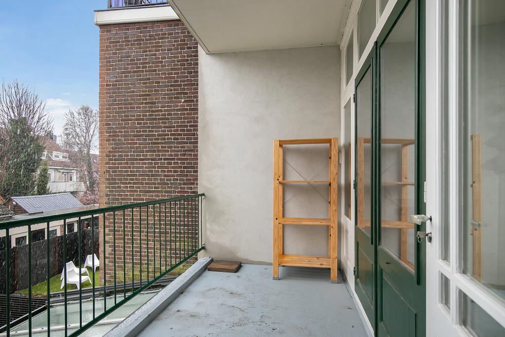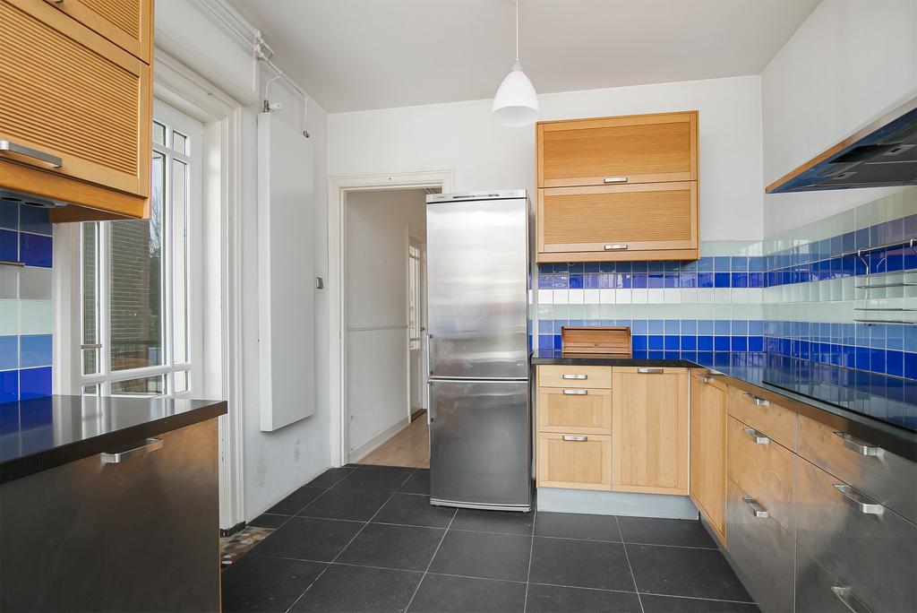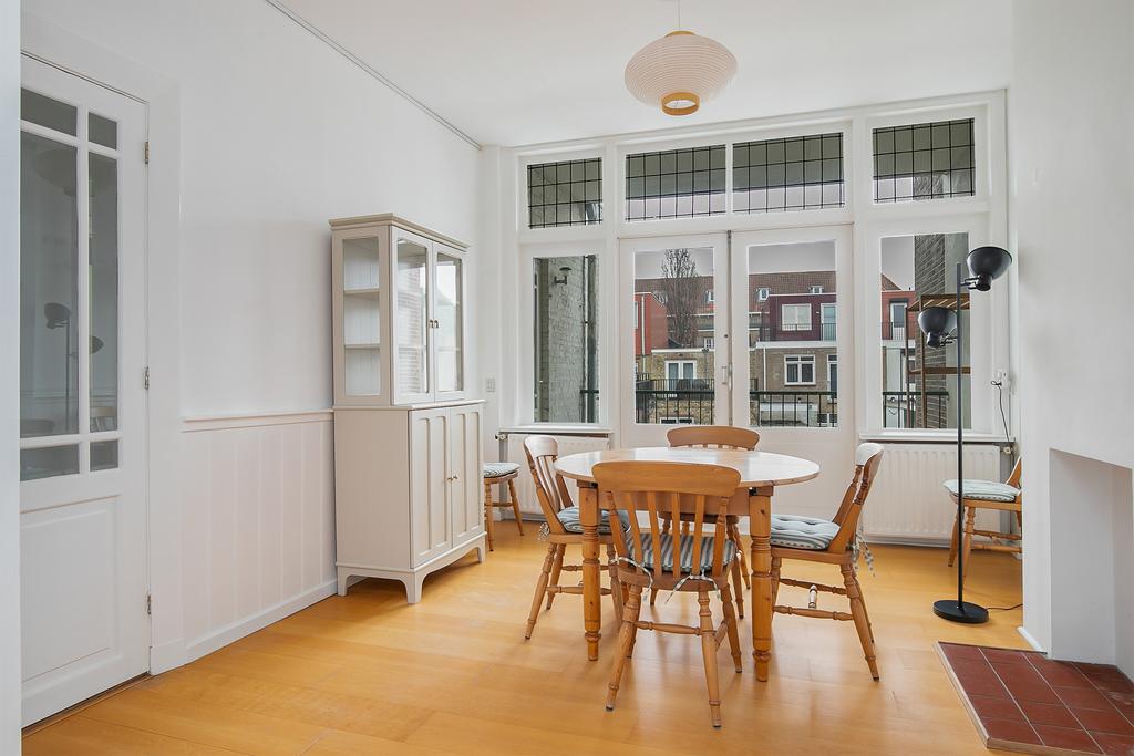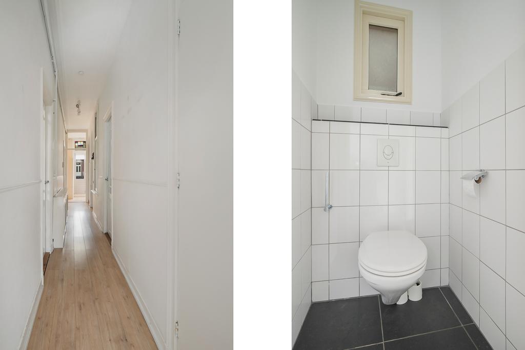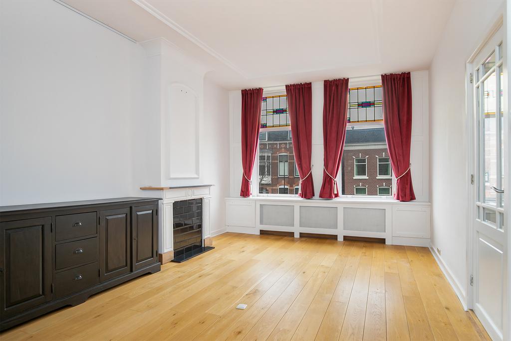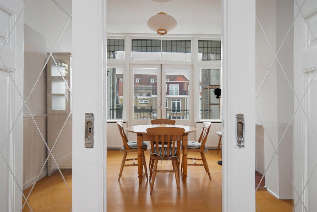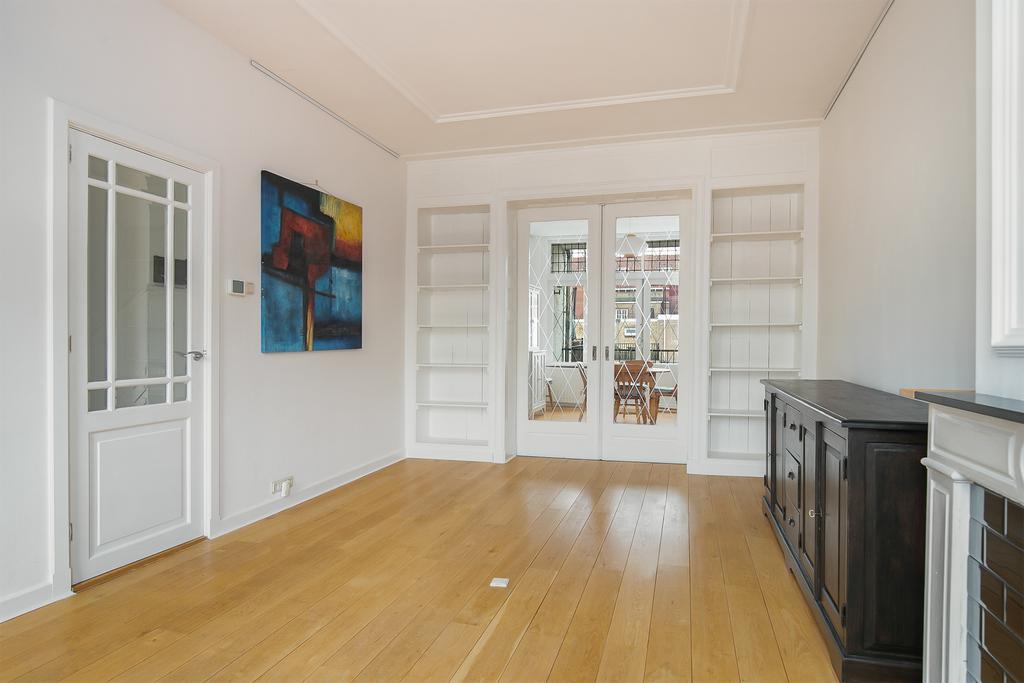 Overloop met toegang tot de kamer met openslaande deuren naar het balkon aan de voorzijde. De ruime woonkamer is gelegen aan de voorzijde met grote raampartijen waardoor u veel lichtinval heeft. Vanuit de woonkamer loopt u via de en suite deuren naar de achterkamer, voorzien van 2 vaste kasten en openslaande deuren naar het ruime balkon. De royale keuken met houten en rvs frontinrichting, antracietgrijs aanrechtblad en diverse inbouwapparatuur; koel-vriescombinatie, inductiekookplaat, vaatwasser, combimagnetron , close-in-boiler en oven. Vanuit de keuken heeft u toegang tot dakterras op het oosten en het balkon. Vanuit de keuken komt u op de overloop en bevindt zich het toilet, bijkeuken deze kunt u gebruiken als wasruimte.